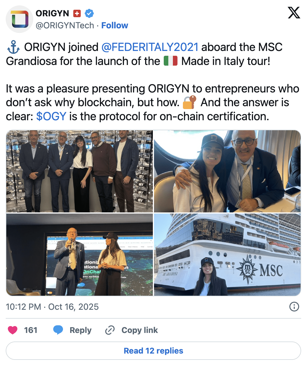 合作伙伴关系增长:在整个第四季度,ORIGYN 加倍努力与生态系统建设者合作,开辟了新的入驻机会,并巩固了将去中心化基础设施与机构实用性联系起来的联系。