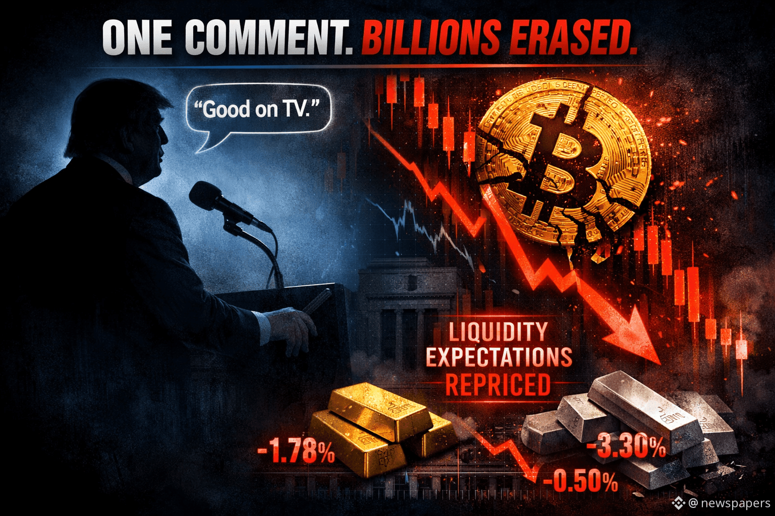 Markets don’t move on headlines — they move on liquidity expectations. Trump’s comment signaled lower odds of easy money, rate cuts, and aggressive monetary support. When expectations around liquidity change, every asset recalibrates, often within minutes.
