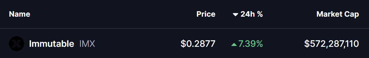 Im Kryptowährungsmarkt von heute sind Gaming-Token wieder im Rampenlicht, wobei Immutable (IMX) zunehmende Aufmerksamkeit erhält. Die gesamte Marktkapitalisierung des Gaming-Narrativs ist um 2,99% gestiegen, während das Handelsvolumen in den letzten 24 Stunden um bemerkenswerte 9,57% zugenommen hat.