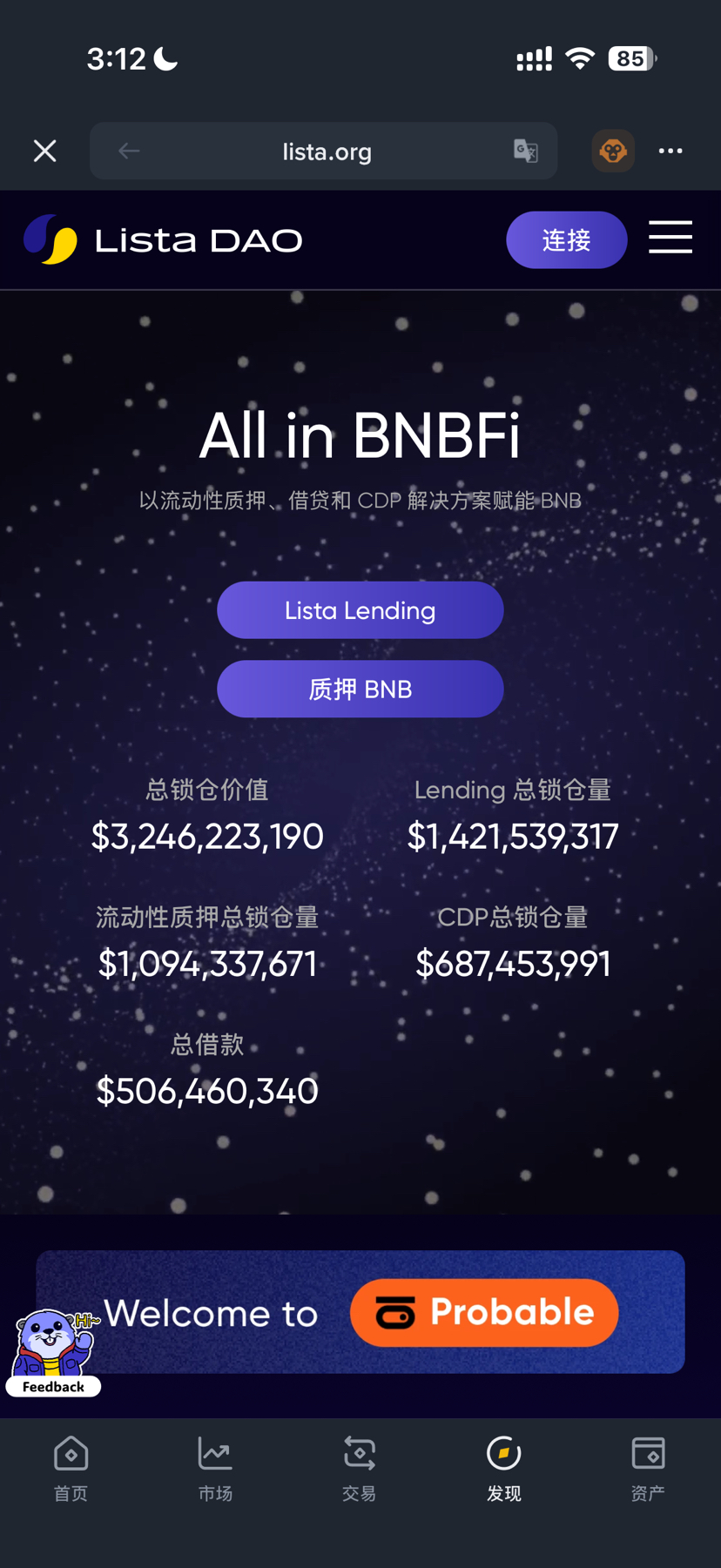 1. Öffne die Binance Wallet, gehe zur DApp-Entdeckungsseite und finde lista.DAO, verbinde die Wallet. Suche auf der Entdeckungsseite der Binance Wallet DApp nach Lista DAO (oft auf den Hot-Lists).