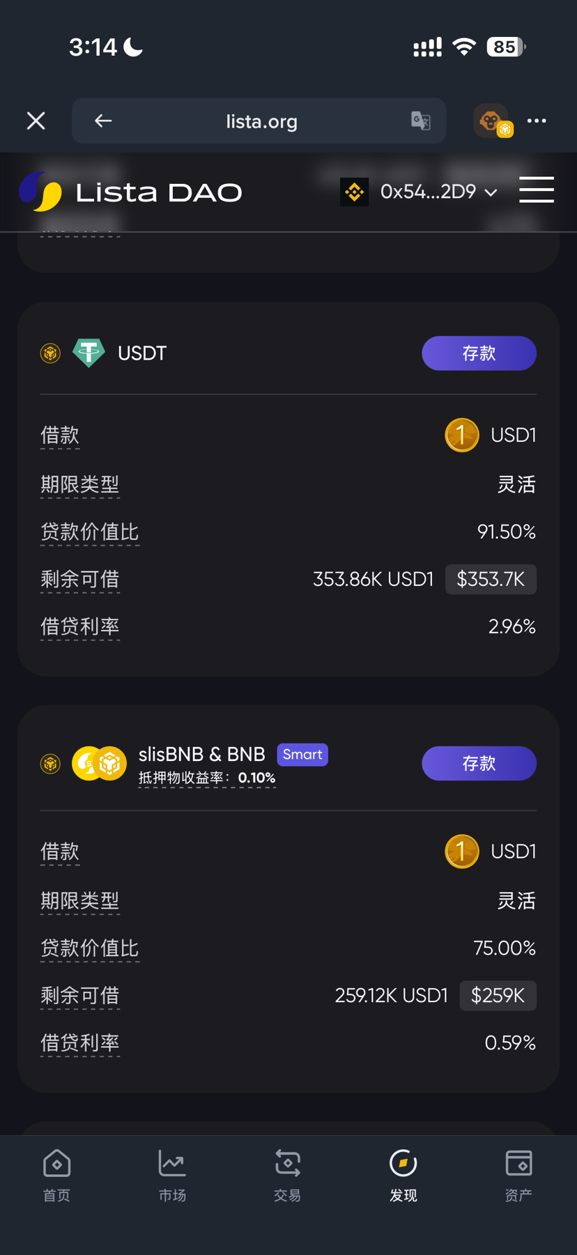 Aber du weißt nicht: Man kann tatsächlich den Lending-Markt von Lista DAO nutzen, um USD1 „smart“ zu erhalten! Man muss nicht direkt auf dem Markt kaufen (Preisschwankungen und Slippage ertragen), sondern leiht USD1 zu extrem niedrigen Zinssätzen, indem man Blue-Chip-Assets (wie USDT, slisBNB, BNB) hinterlegt und dann in Binance Earn umwandelt, um hohe Renditen zu erzielen. So umgeht man die Abwertung von USD1 im Spot und kann gleichzeitig Zinsdifferenzen sichern, wodurch der Nettogewinn sogar höher ist!