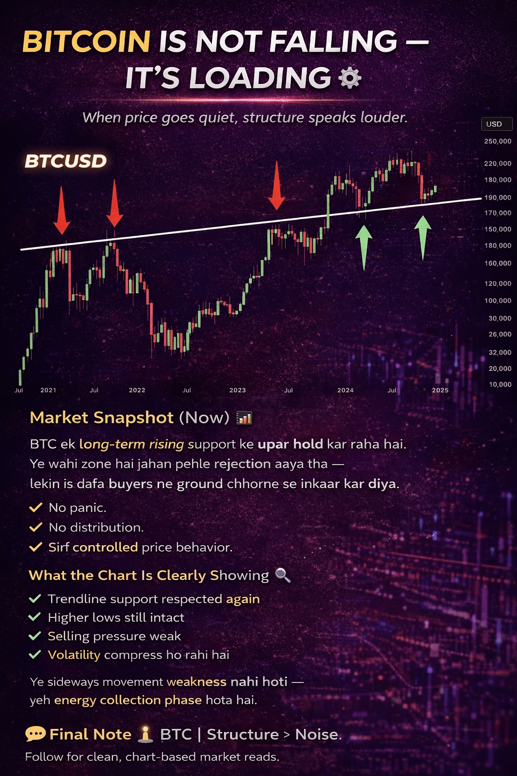 Bitcoin hält sich über einer langfristigen steigenden Unterstützung — derselben Zone, in der Panik auftreten sollte, es aber nicht tut.