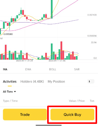 Token in der frühen Phase werden oft auf dezentralen Netzwerken eingeführt, wo der Handel für Anfänger kompliziert sein kann. Die Benutzer müssen die richtige Kette auswählen, die Slippage manuell einstellen und mit fehlgeschlagenen Transaktionen umgehen. Quick Buy vereinfacht diesen gesamten Prozess.