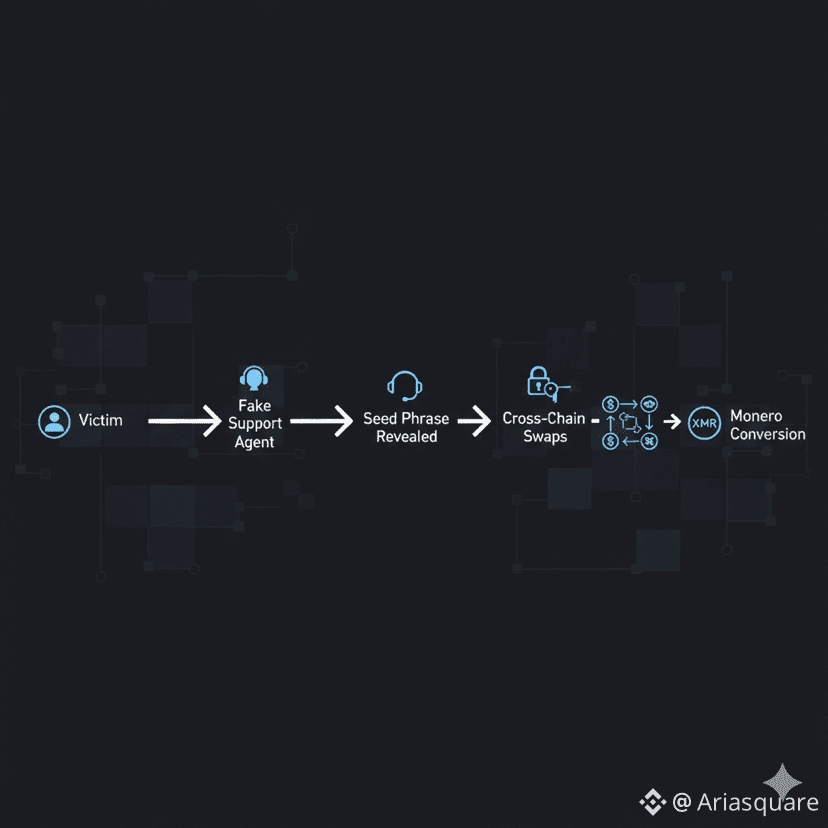 They gave up their seed phrase. Game over. The attacker moved faster than most people process a text message bridging across THORChain, converting to #Monero , and washing the funds through multiple chains before most of us even woke up.