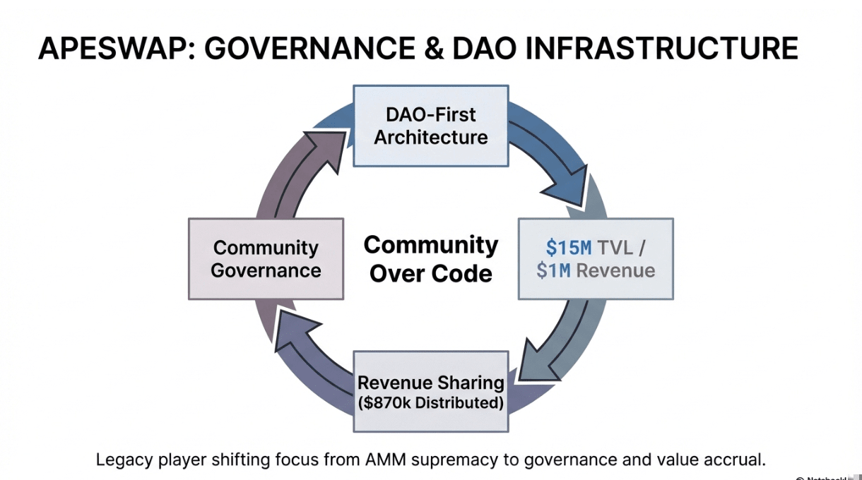 Die DAO-fokussierte Architektur unterschied ApeSwap von rein technischen AMMs und betonte die gemeinschaftliche Governance und dezentrale Entscheidungsfindung. Die Multichain-Unterstützung über BNB, Arbitrum, Ethereum und Polygon bot Zugang zu vielfältigen Liquiditätspools und Handelspaaren. Die kumulative Einnahmenverteilung an Token-Inhaber erreichte 870.000 $, was das Engagement für den Wertzuwachs für Governance-Teilnehmer demonstrierte.