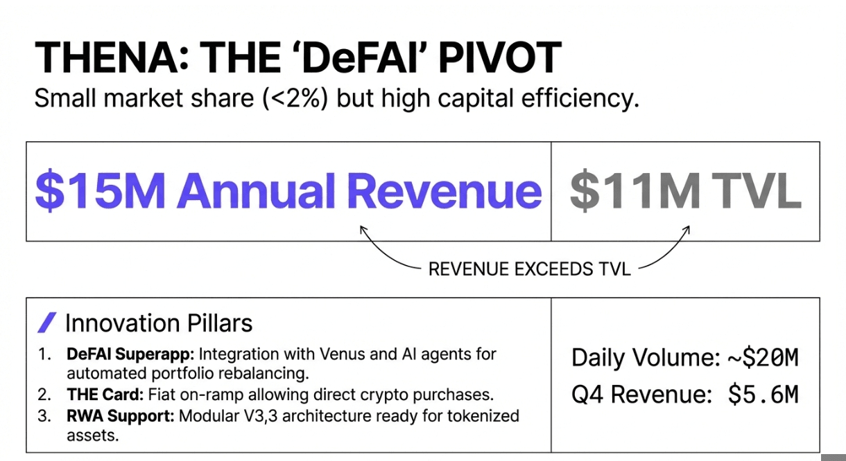 Die modulare Architektur V3,3 unterstützte die Tokenisierung realer Vermögenswerte und komponierbare Poolstrukturen und positionierte THENA für die institutionelle Übernahme. Die Einnahmenverteilung über 2024 zeigte 4,1 Millionen $ im Q1, 3,1 Millionen $ im Q2, 2,5 Millionen $ im Q3 und 5,6 Millionen $ im Q4, wobei der Anstieg im Q4 auf erfolgreiche Produkteinführungen oder Markteroberungen hindeutet. Neun aktive Pools boten 0 % durchschnittliches APY auf Basisrenditen, wobei die Rückflüsse durch veTHE-Token-Locking und Emissionen statt Handelsgebühren generiert wurden.