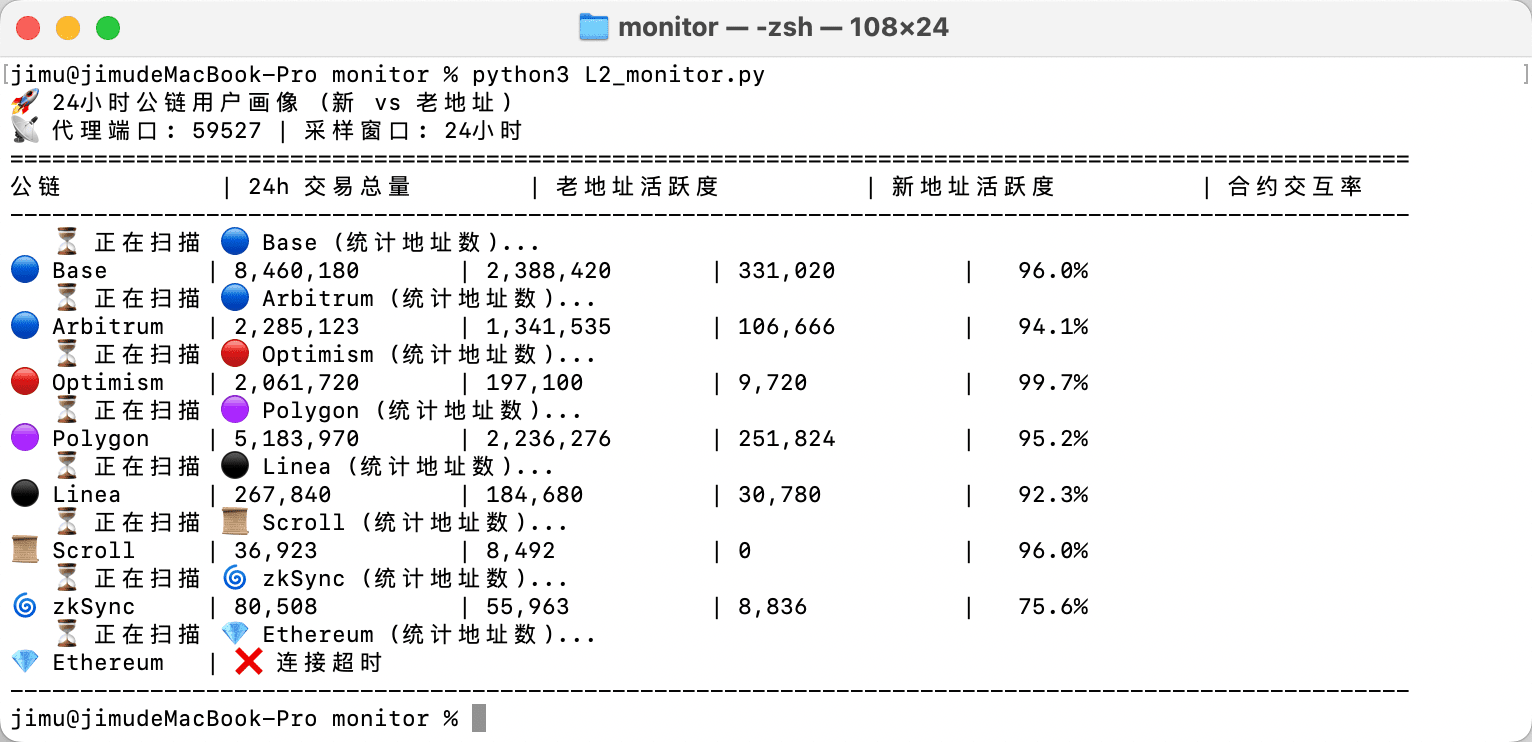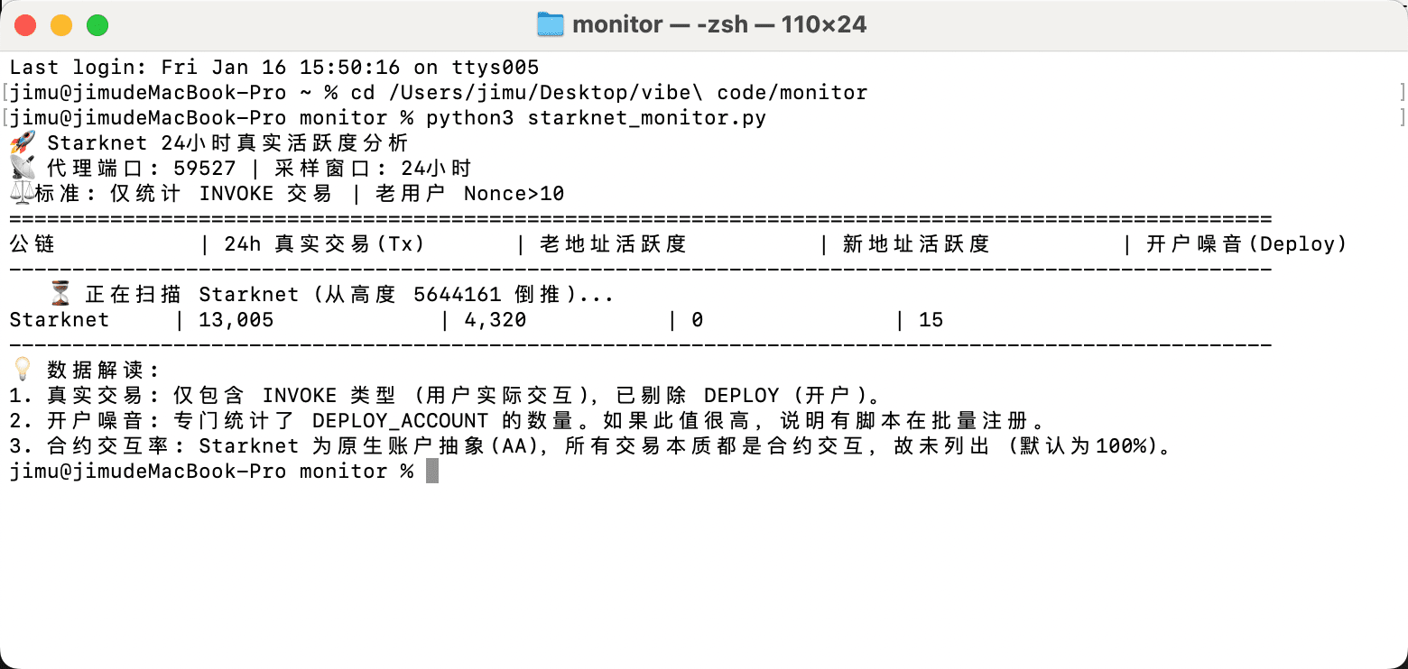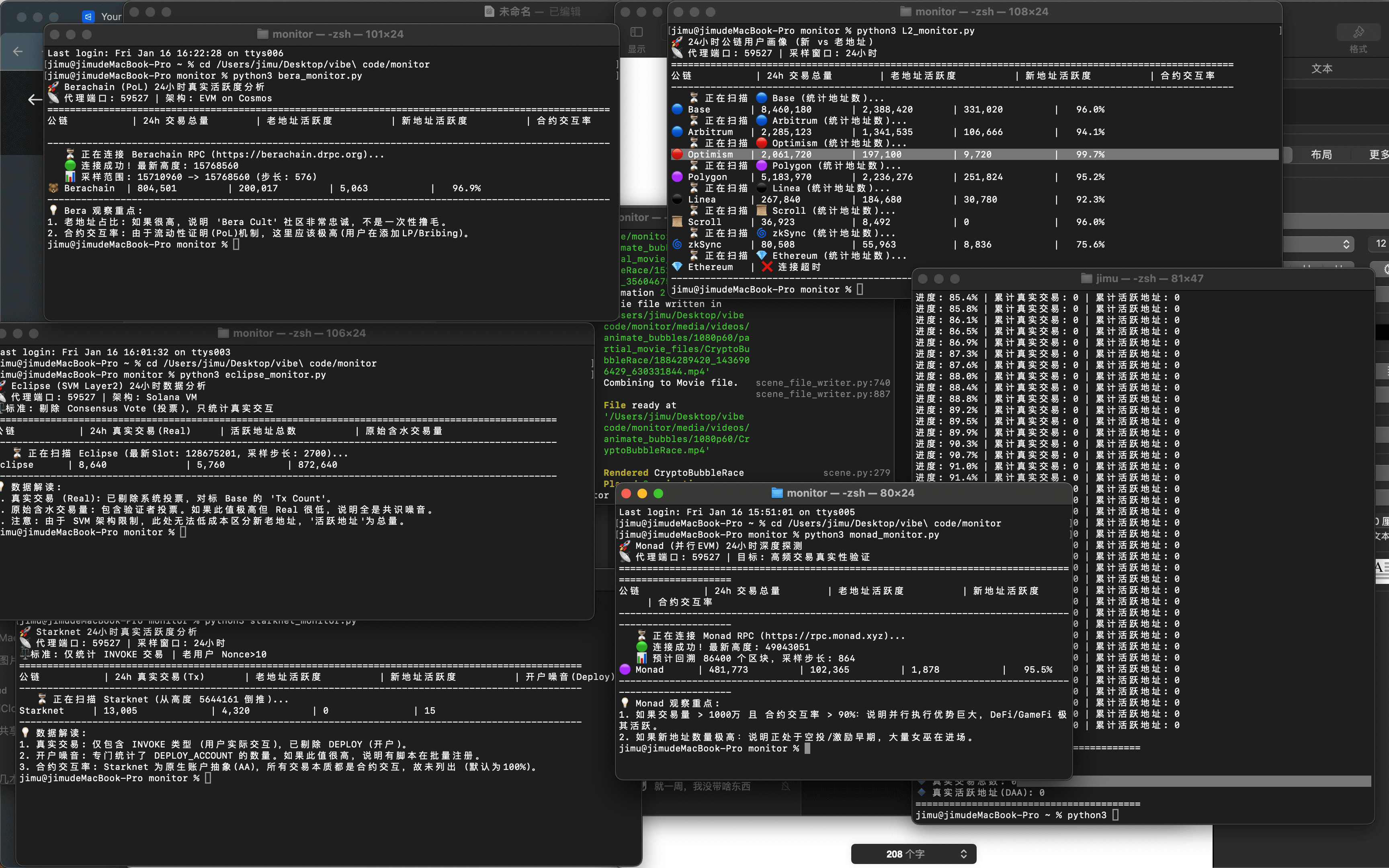 Um der Sache auf den Grund zu gehen, ließ ich Gemini ein Python-Skript schreiben, das sich mit RPC-Knoten auf wichtigen öffentlichen Blockchains verbindet und die Rohdaten der Blöcke der letzten 24 Stunden (15.–16. Januar) direkt abruft. Um die Realität so genau wie möglich abzubilden, ließ ich Gemini einen vollständigen Blockchain-Bereinigungsalgorithmus entwickeln.