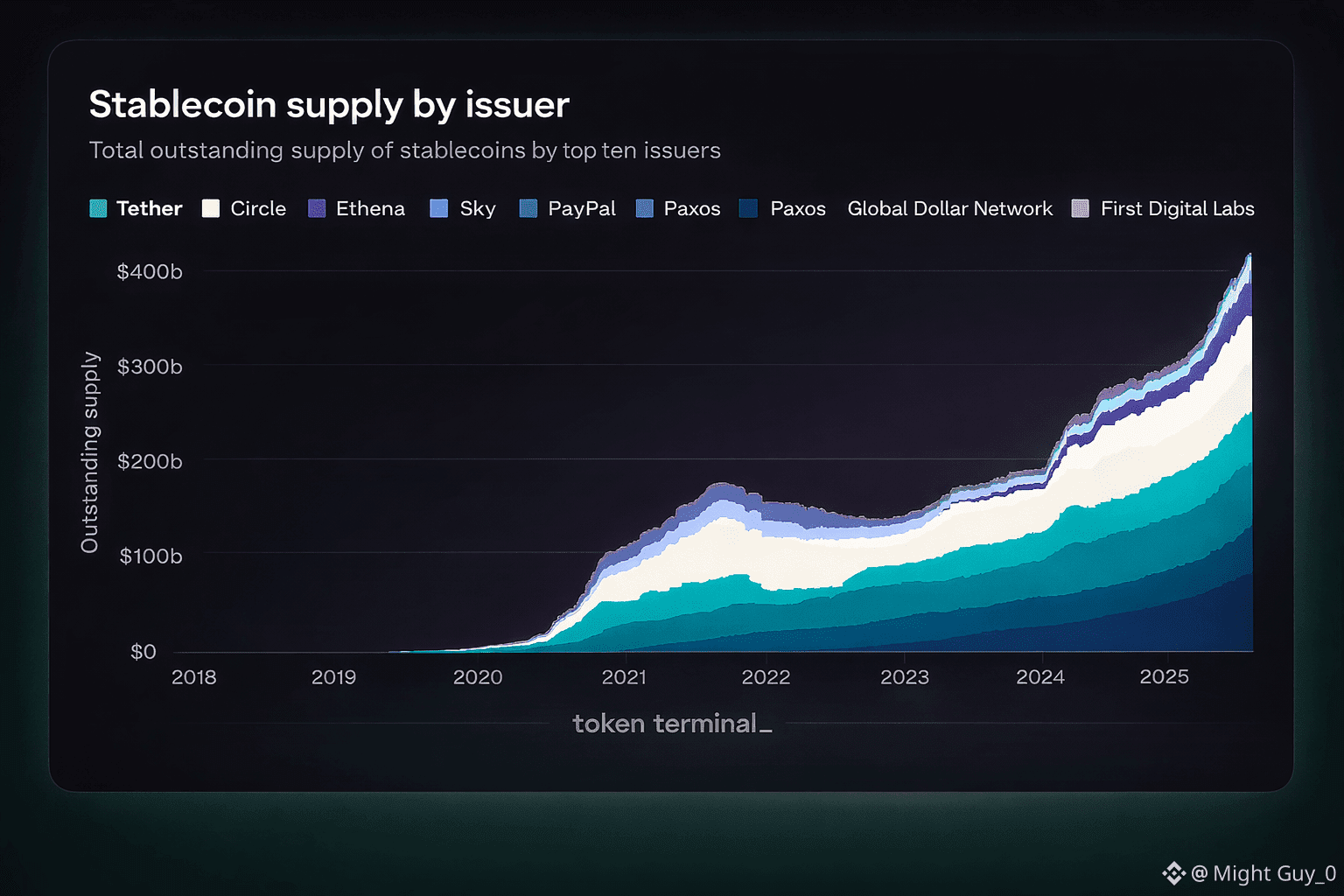 The steady, almost uninterrupted rise in stablecoin supply since October 2024 is more than a market statistic. It is a signal that stablecoins are quietly becoming a core layer of global money movement. With total supply now at $307.4 billion and USD₮ alone commanding nearly 60% market share, the question is no longer whether stablecoins will scale, but where that scale will ultimately settle.