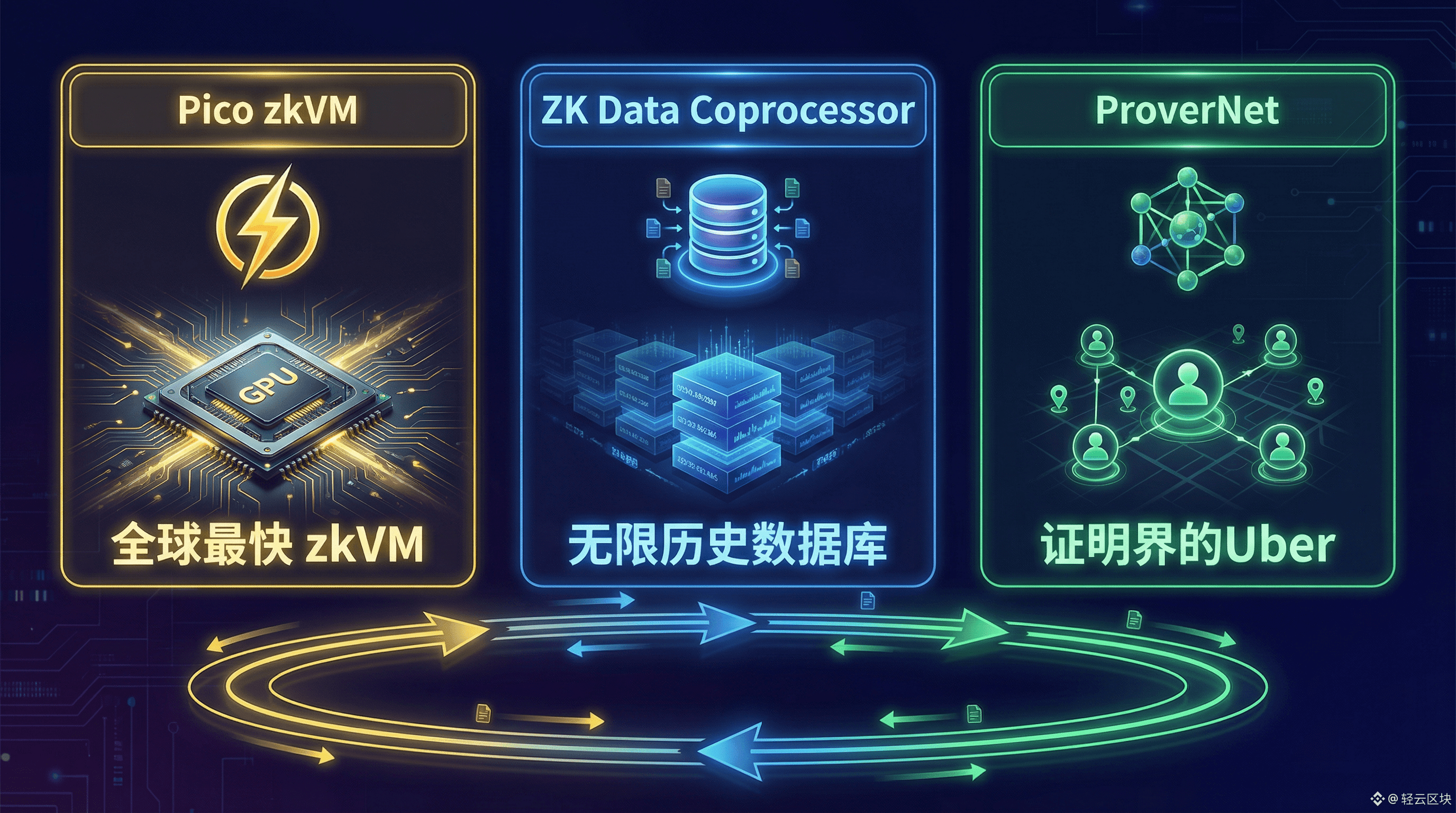 Brevis 之所以能获得 V 神和以太坊基金会的青睐,离不开它的三大杀手锏:Pico zkVM、ZK Data Coprocessor,以及 ProverNet。
