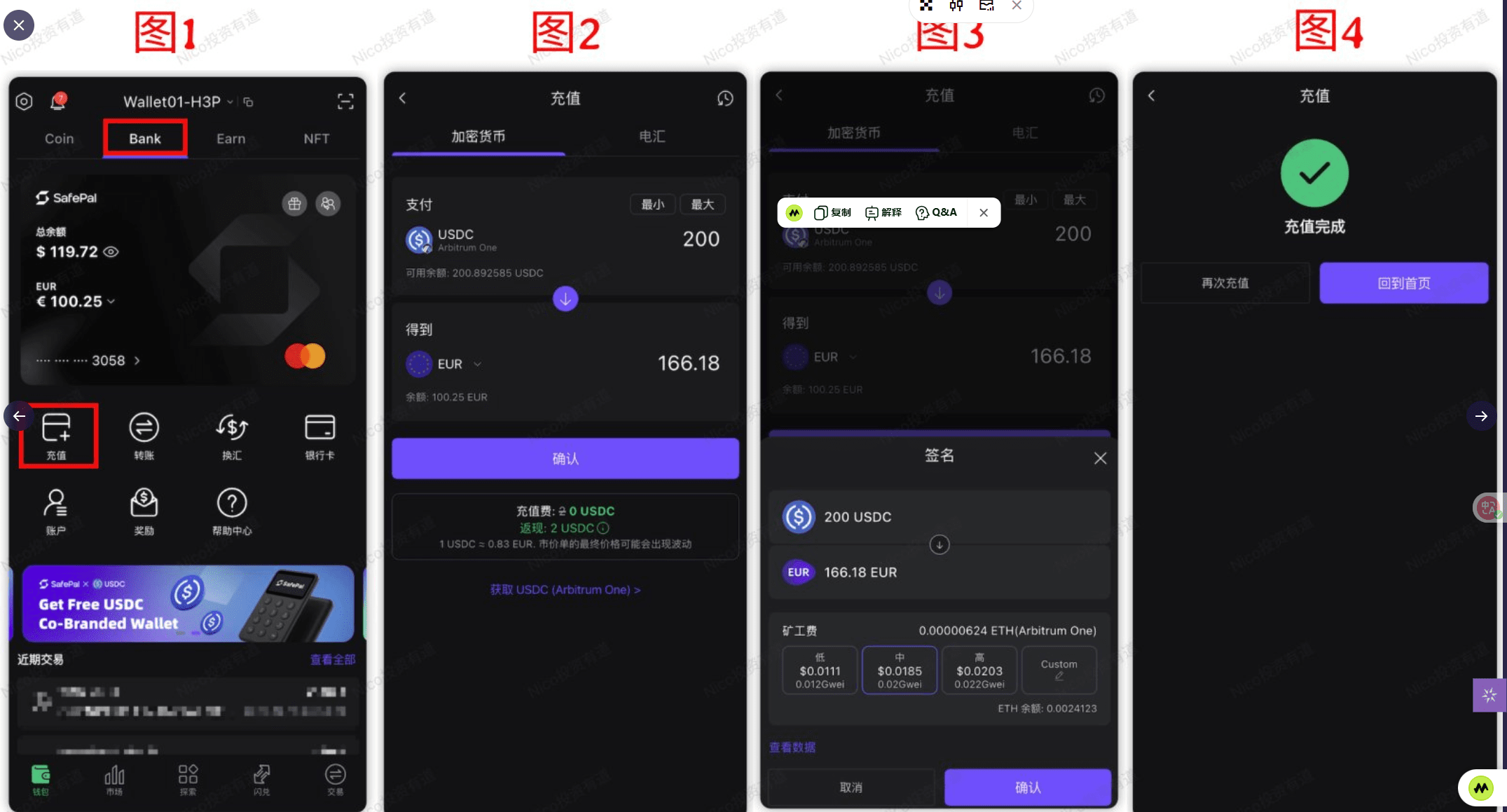 Nachdem wir USDC und Ethereum auf das SafePal-Wallet abgehoben haben, haben wir den ersten Schritt des Aufladens abgeschlossen.