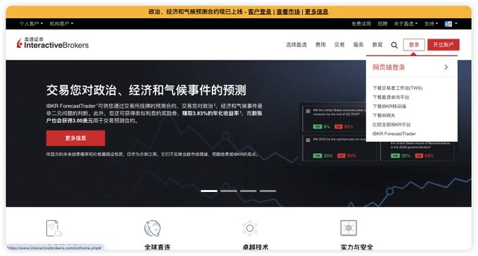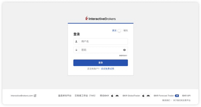 Wie in der Abbildung dargestellt, gehe zur Website von Interactive Brokers, klicke auf die Schaltfläche Anmelden in der oberen rechten Ecke und wähle die Web-Version zum Anmelden.