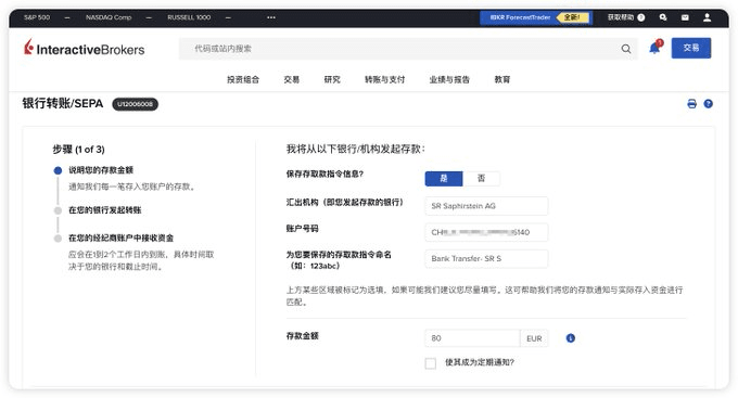 Außerdem muss während des Einzahlungsprozesses ein Bankkonto mit dem gleichen Namen verwendet werden, um Geld auf das Interactive Brokers-Konto einzuzahlen, dies ist eine Anforderung der US SEC.