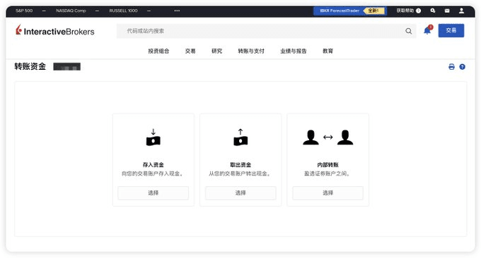 Nach dem Betreten der Kontoseite klicke oben auf Überweisung und Zahlung, wähle Überweisungsfonds und klicke dann auf die Schaltfläche zum Einzahlen von Mitteln.