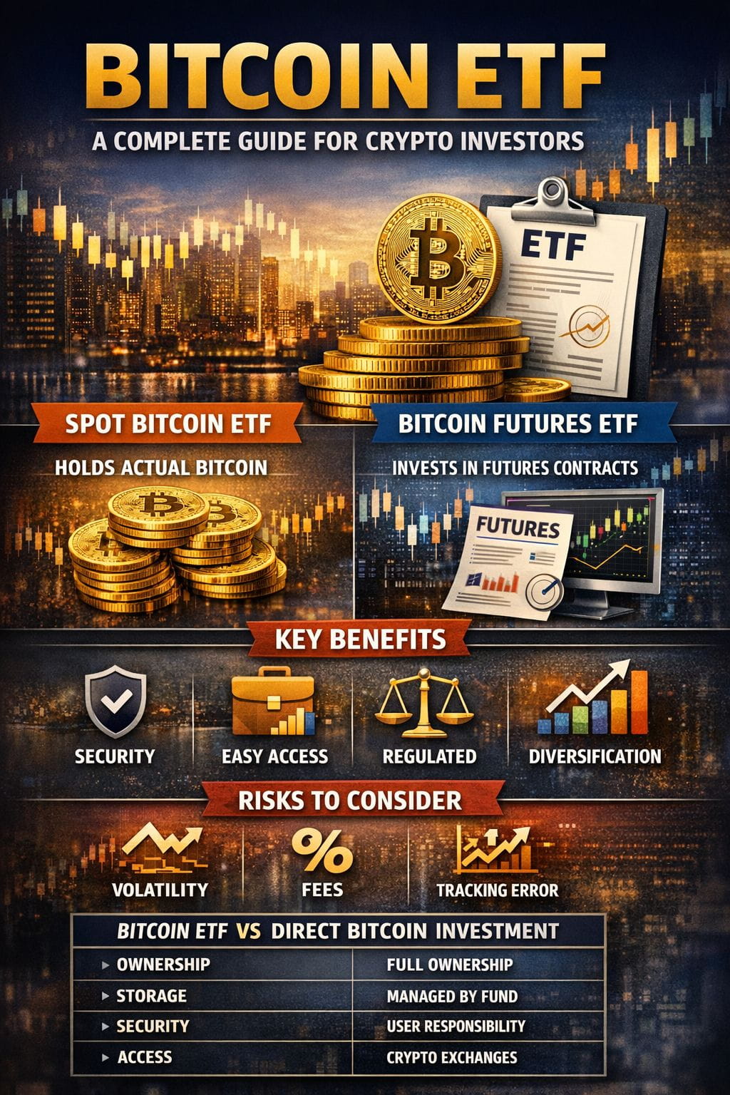 THIS ARTICLE EXPLAINS WHAT A BITCOIN ETF IS, HOW IT WORKS, ITS TYPES, BENEFITS, RISKS, AND ITS IMPACT ON THE GLOBAL CRYPTO MARKET.