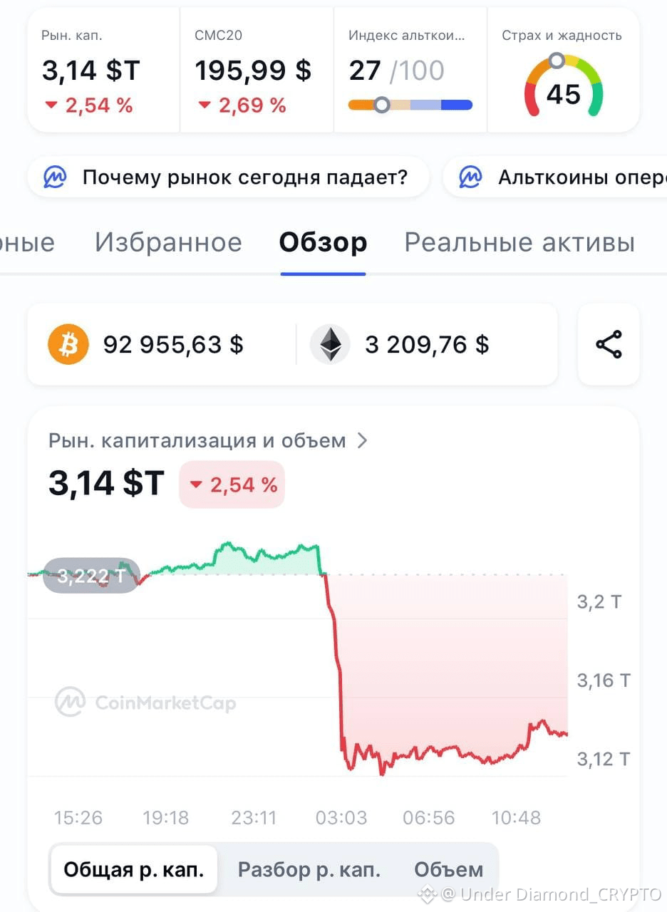 Общая капитализация рынка: Снизилась на 2.92% (около $100 млрд) до $3.13 трлн.
