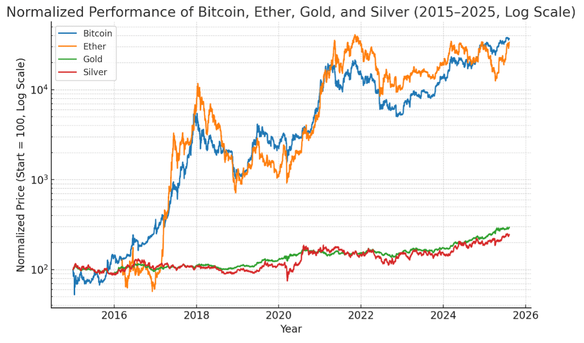 Etwas Interessantes passiert mit der Art und Weise, wie diese verschiedenen Investitionen miteinander verbunden sind. Bitcoin war früher getrennt von der Finanzwelt, aber jetzt verhält es sich wie der Aktienmarkt. Wenn Aktien verkauft werden, fällt auch Bitcoin. Währenddessen entwickeln sich Metalle wie Gold und Silber entgegengesetzt. Sie steigen. Das ist eine Veränderung im Vergleich zu früher. Bitcoin ist nicht mehr getrennt von der Finanzwelt, und Metalle werden immer beliebter.