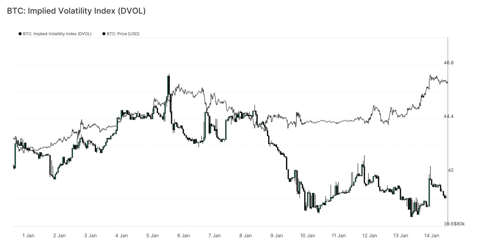 Zuletzt schauen wir uns dieses Bild an, das entscheidend dafür ist, ob wir jetzt handeln sollten - den Volatilitätsindex (DVOL).