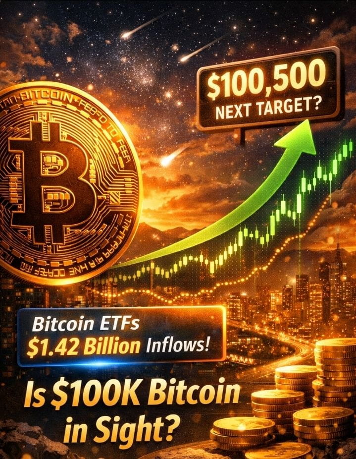في مشهدٍ يعكس تحوّلًا عميقًا في أسواق المال، سجّلت صناديق المؤشرات المتداولة للبيتكوين (Bitcoin ETFs) تدفقاتٍ قوية وصلت إلى 1.42 مليار دولار خلال فترة قصيرة — رقم لا يُعد مجرد سيولة عابرة، بل تصويت ثقة مؤسسي واضح على مستقبل البيتكوين.