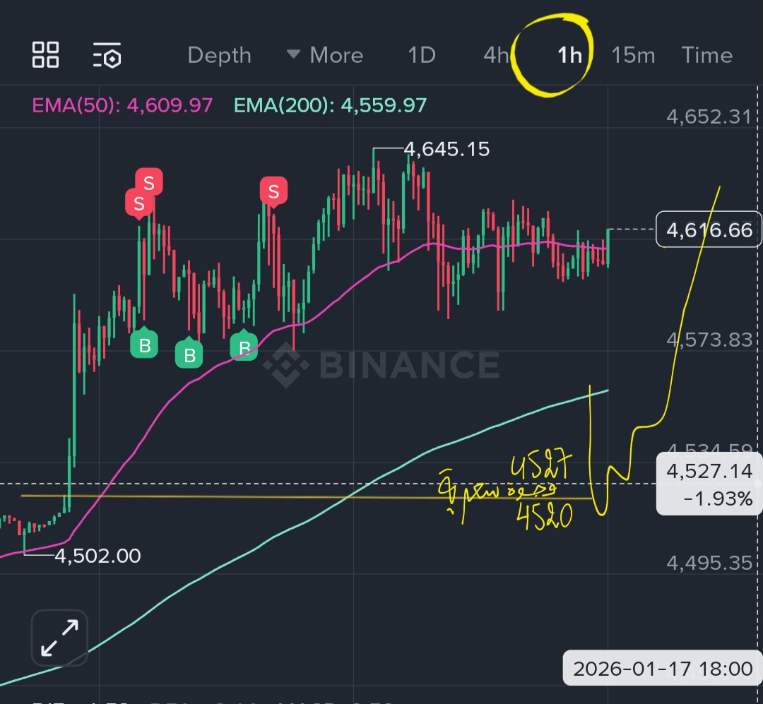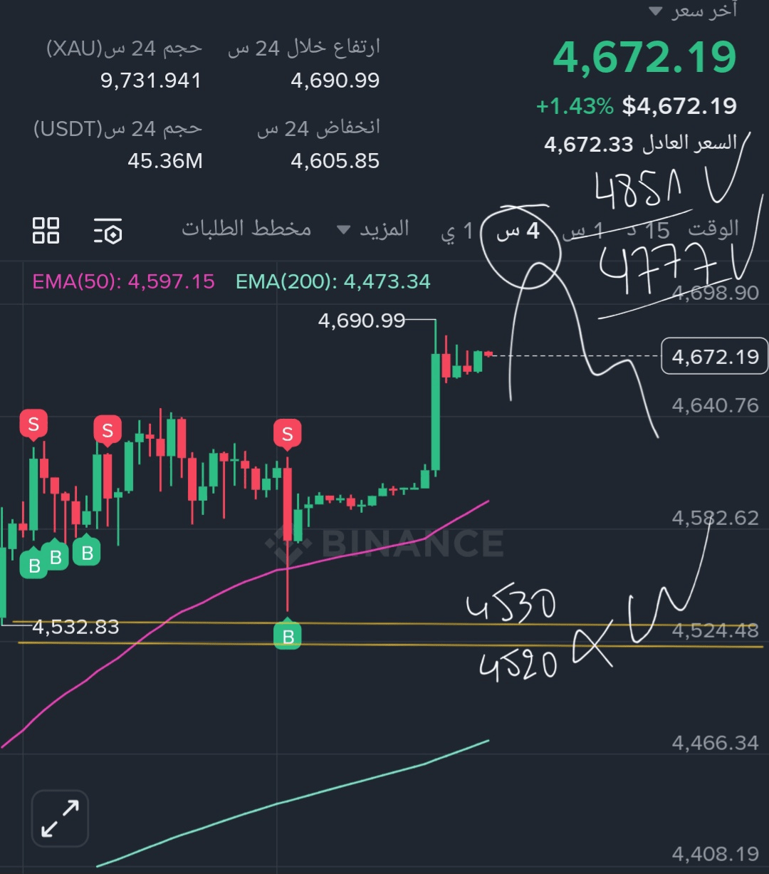 Kurze Zusammenfassung: Der allgemeine Trend ist stark aufwärts gerichtet, und es könnten Kaufgelegenheiten am Support (~4,535) oder Teilverkäufe nahe dem Widerstand (~4,700) bestehen.