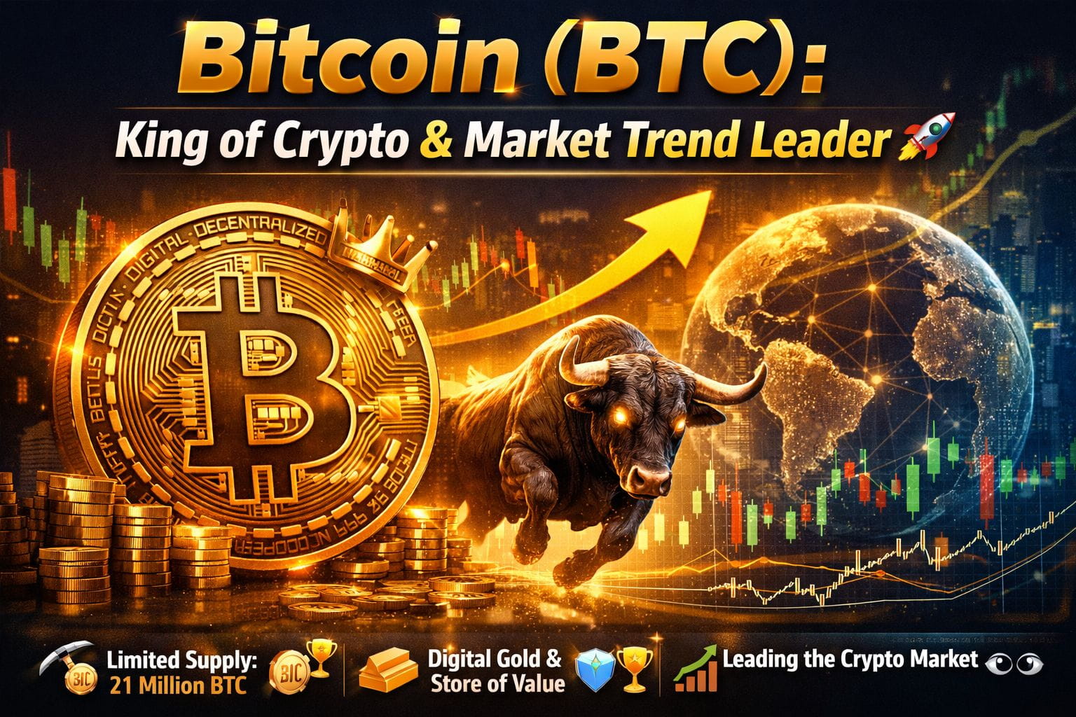 Bitcoin (BTC) is the world’s first and most trusted cryptocurrency 🌍. It was created to build a decentralized financial system, allowing users to send and receive money without banks or intermediaries 🔗.