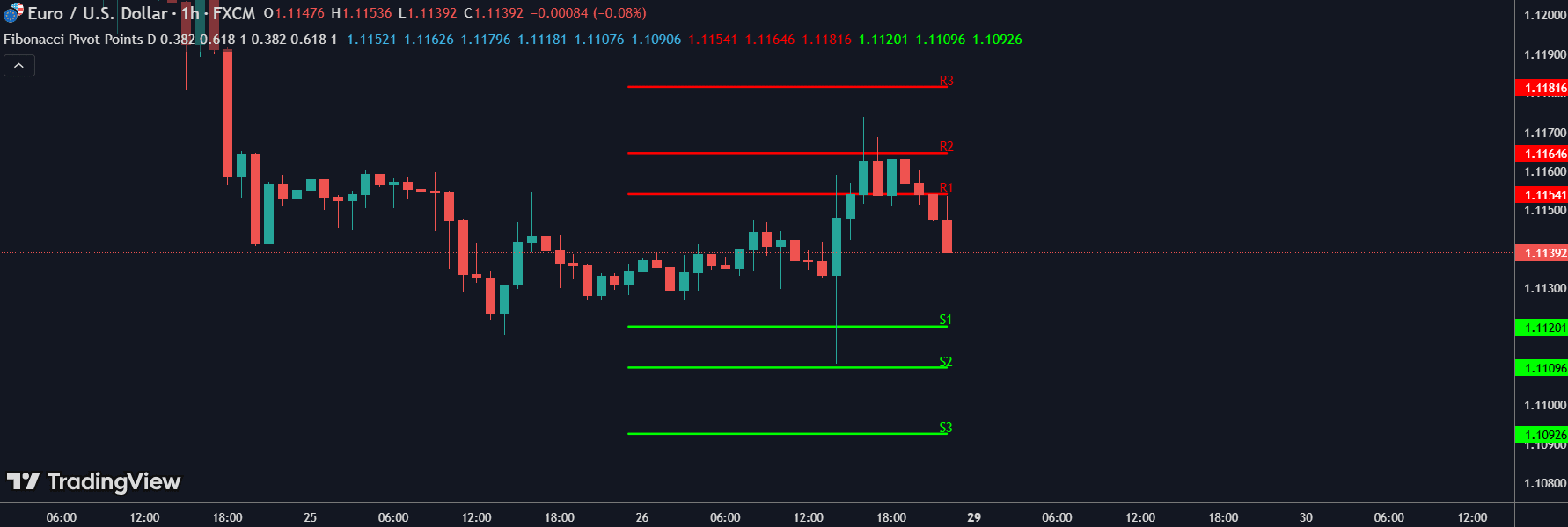 Diese Pivot-Punkte wenden Fibonacci-Retracement-Niveaus auf typischen Pivot-Punkt-Berechnungen an und bieten potenzielle Unterstützungs- und Widerstandsniveaus. Einige Händler ziehen sie den Standard-Pivots vor, da sie glauben, dass Fibonacci-Verhältnisse genauere Umkehrzonen abbilden können. In Krypto, wo sich die Marktstimmung abrupt ändern kann, dienen diese Niveaus als objektive Referenzpunkte für Ein- und Ausstiege.