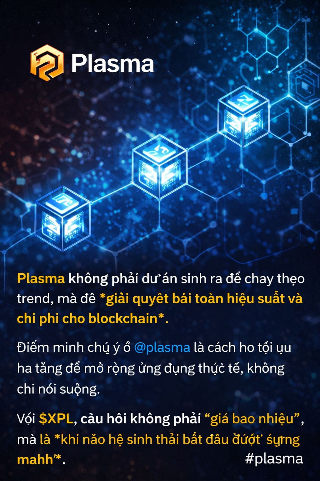 Plasma không phải dự án sinh ra để chạy theo trend, mà để **giải quyết bài toán hiệu suất và chi phí cho blockchain**.