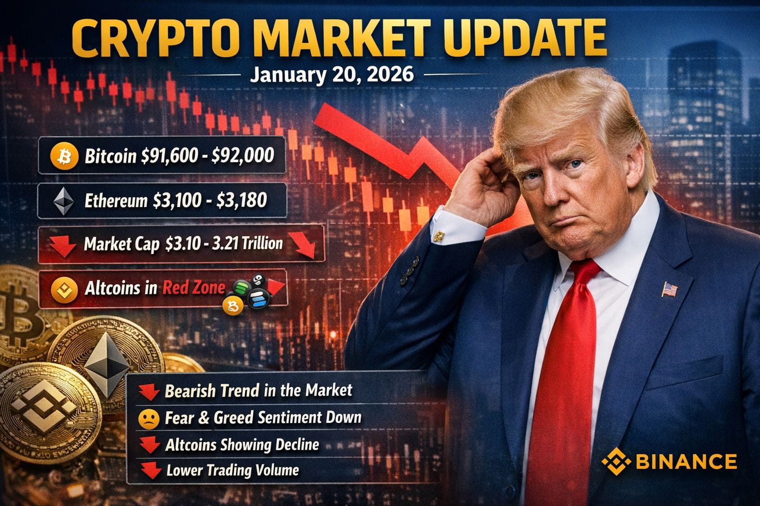 Today, January 20, 2026, the global crypto market experienced a bearish trend with major digital currencies trading in a lower range, causing the overall market capitalization to decrease.