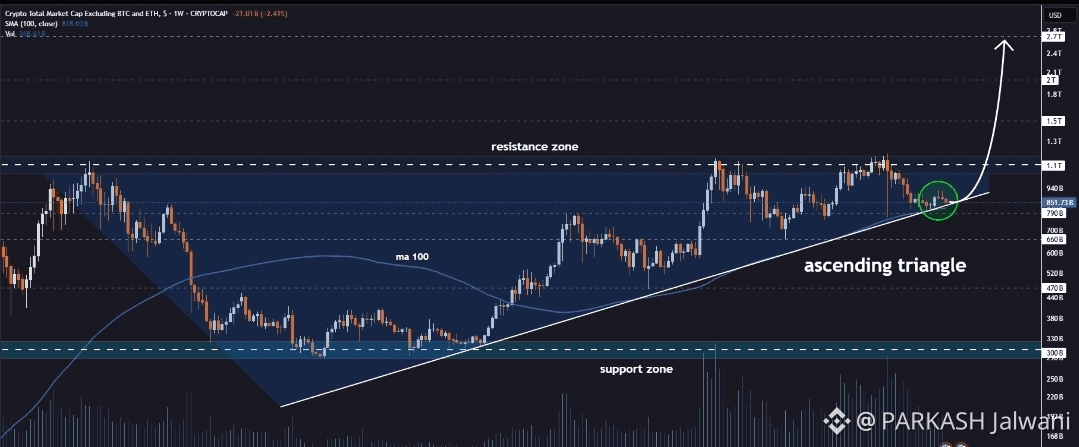 The total crypto market cap is trading near the lower border of an ascending triangle pattern on the weekly timeframe 🔍 $XNY
