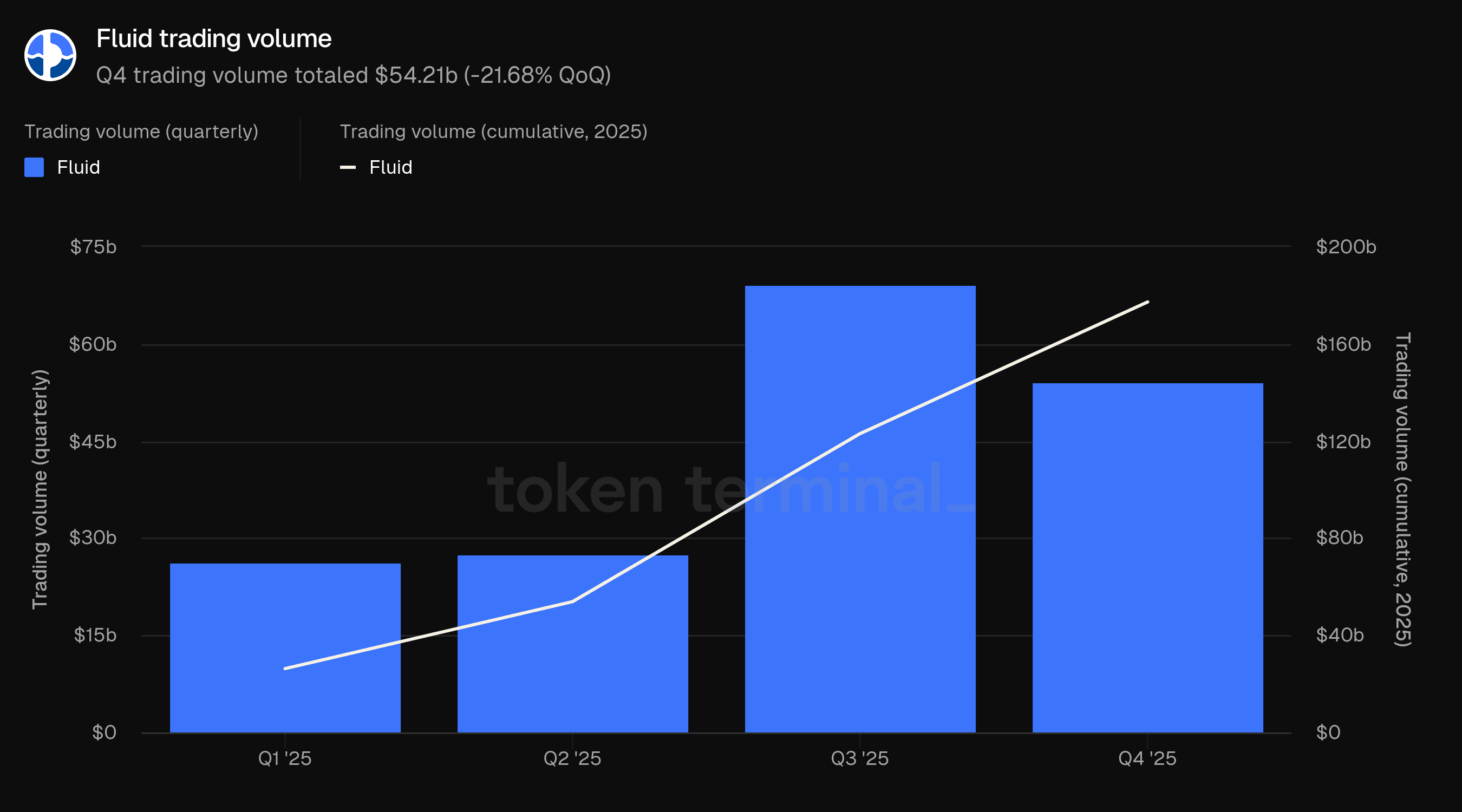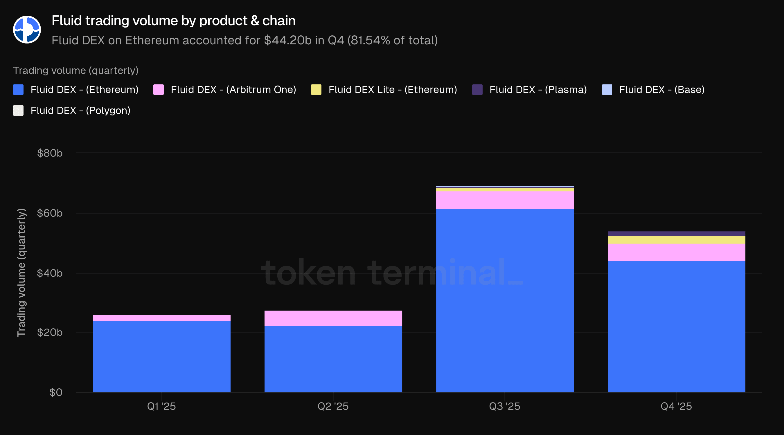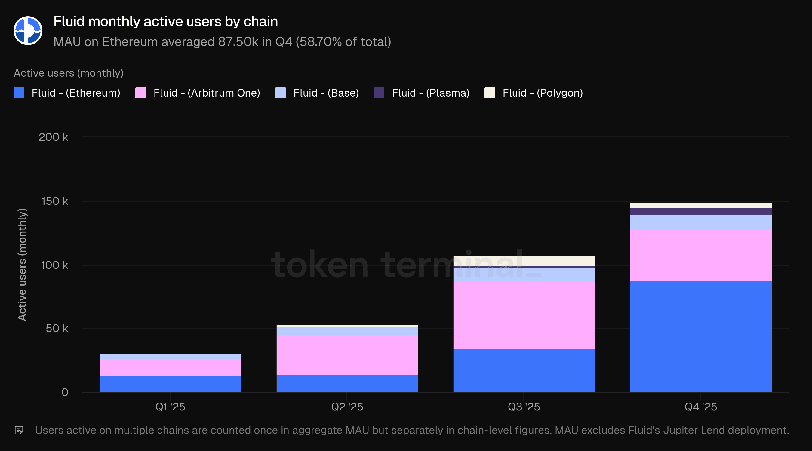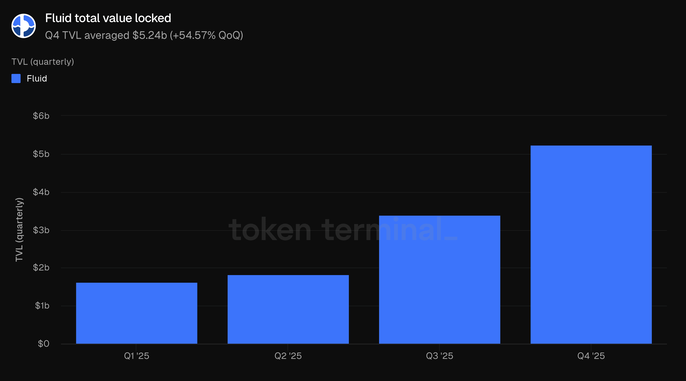 "Fluid beendete Q4 mit +54% QoQ-Wachstum trotz des allgemeinen Marktrückgangs. Der Erfolg im Q4 wurde hauptsächlich durch das Wachstum von Fluid auf Solana (Jupiter Lend) und auf der Plasma-Kette angetrieben."