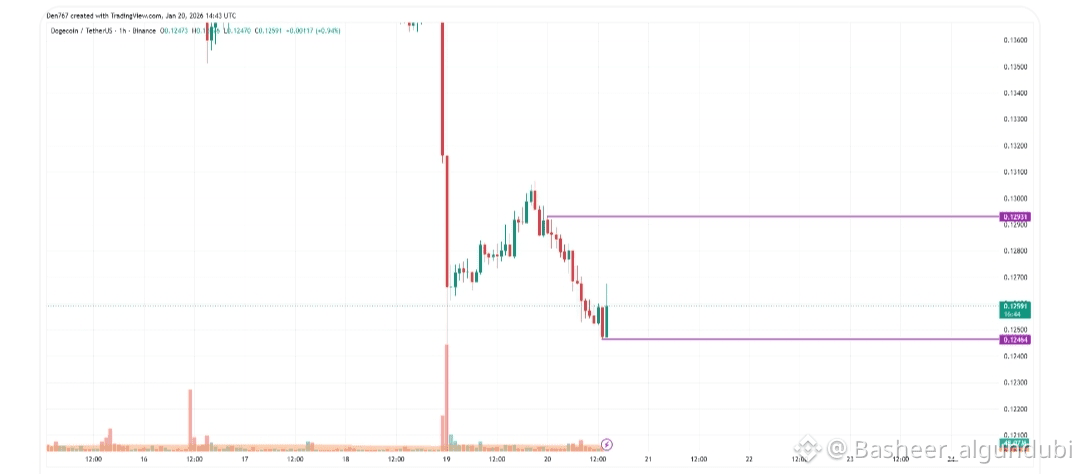 على الرسم البياني للساعة، يقترب سعر #DOGE من مستوى الدعم المحلي عند 0.1246 دولار. إذا لم يرتفع السعر بحلول نهاية اليوم، فمن المتوقع استمرار الانخفاض إلى منطقة 0.12 دولار.