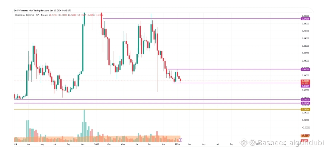 على المدى الطويل، #DOGEUSDT لا توجد إشارات انعكاس حتى الآن. إذا أغلق الرسم البياني اليومي بالقرب من أدنى مستوى له، فهناك احتمال كبير لاختبار مستوى الدعم الأقرب عند 0.1199 دولار بنهاية الأسبوع.
