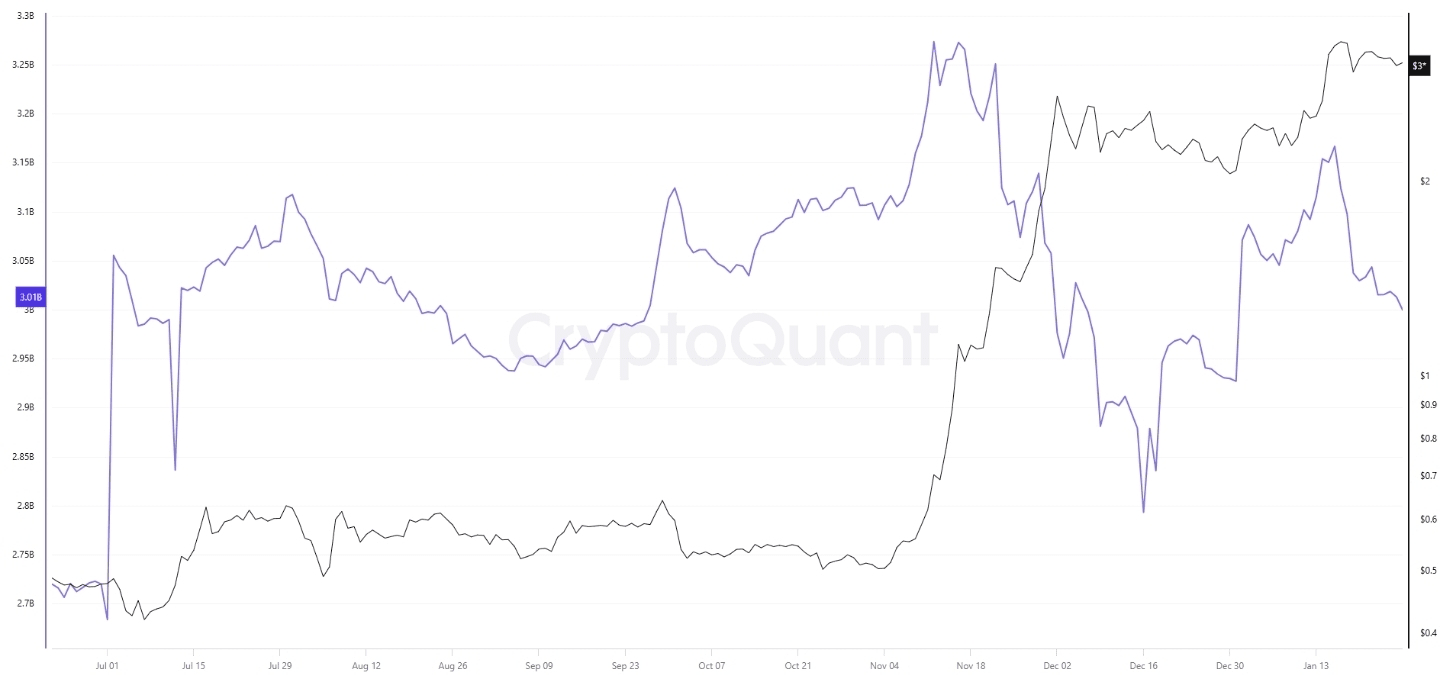 Rückgang der XRP-Bestände auf den Plattformen, während der Preis stabil bleibt, was einen Rückgang der Verkaufsabsicht widerspiegelt und einige Liquidität in langfristige Speicherung umschichtet.