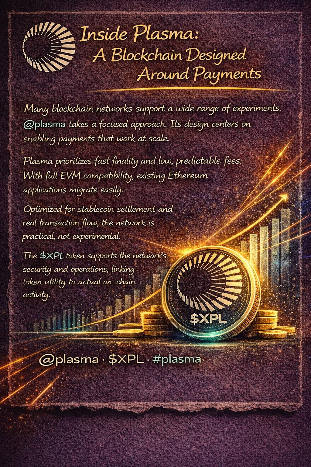 Many blockchain networks are built to support a wide range of experiments. @undefined takes a more focused approach by centering its design on one clear objective: enabling efficient, scalable payments on-chain. Plasma is structured as a payment-focused Layer 1, created to handle consistent transaction flow rather than sporadic, high-cost activity.