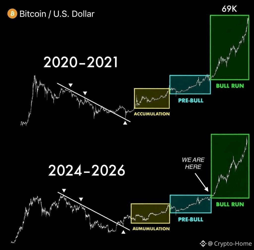 History doesn't always repeat, but it often rhymes! If you look at the current market structure compared to the 2020–2021 cycle, the similarity is undeniable. We have officially moved past the Accumulation and Pre-Bull phases.