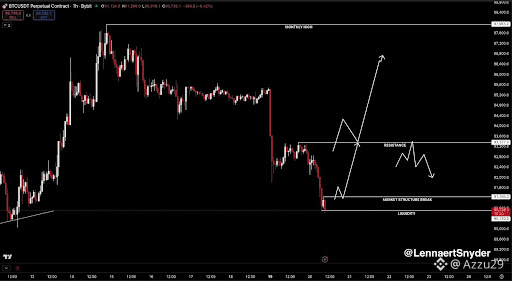 Despite the volatility, Snyder emphasizes the importance of patience in such conditions, waiting for clear triggers, especially as the market navigates a fragile structure after the recent sell-off. On the bullish side, a potential scalp setup emerges if BTC manages to break the M15 market structure by reclaiming the $91,265 level. Should this occur, the initial upside target is located near the $93,377 resistance, with the monthly high serving as the ultimate objective if momentum continues to build.