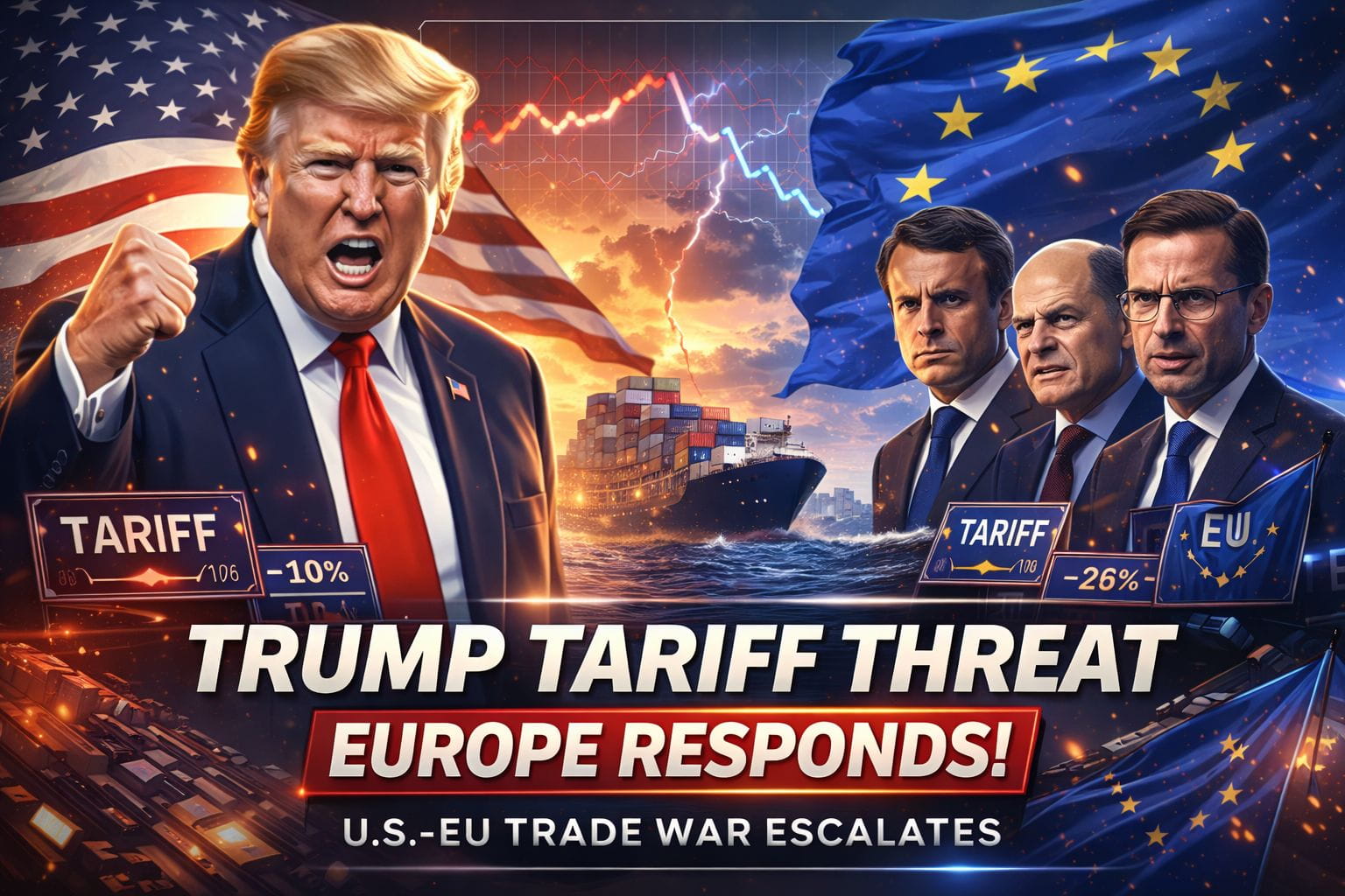 Former U.S. President Donald Trump has threatened to impose new tariffs on several European countries, escalating tensions between the United States and the European Union. The proposed tariffs could start around 10% and rise sharply if European leaders do not align with U.S. demands linked to strategic and geopolitical issues, including Greenland.