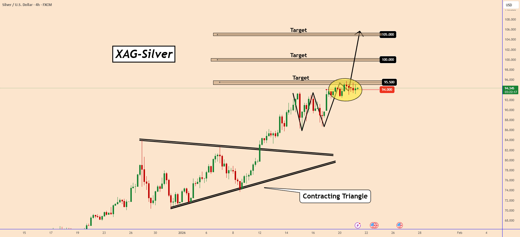 Silber hat nach einer Konsolidierung innerhalb einer klaren kontrahierenden Dreiecksformation einen starken bullischen Ausbruch geliefert.