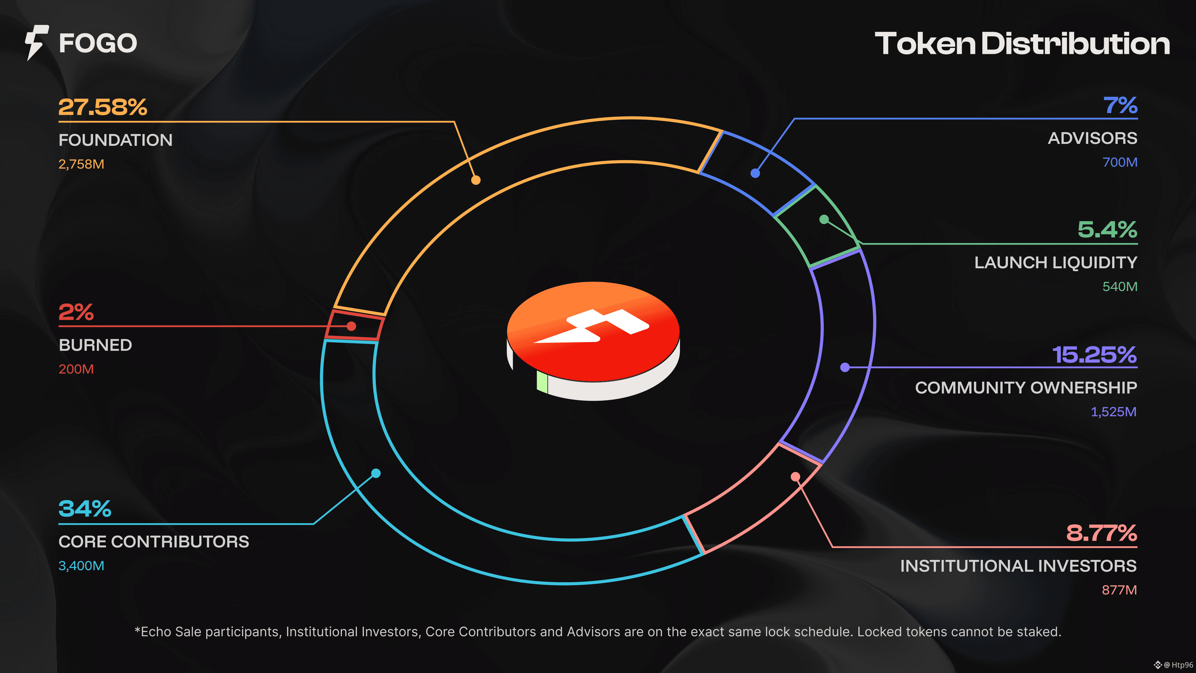 Kế hoạch private sale 20 triệu USD trước đây đã được hủy bỏ. Thay vào đó, Fogo điều chỉnh cấu trúc phân phối token theo hướng ưu tiên cộng đồng và ổn định dài hạn, bao gồm tăng phân bổ cho cộng đồng, đốt 2% tổng cung và khóa hơn 50% tổng cung token trong một khoảng thời gian nhất định, nhằm hạn chế áp lực bán sau TGE và hỗ trợ phát triển bền vững.
