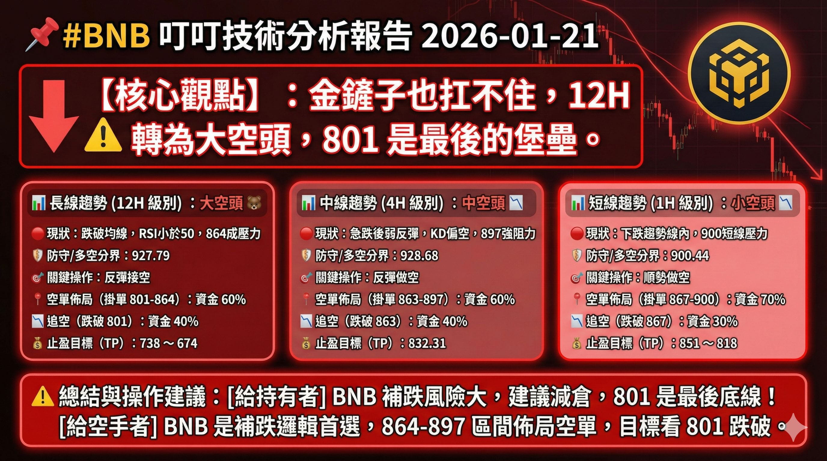 📍#BNB 叮叮技術分析報告 2026-01-21