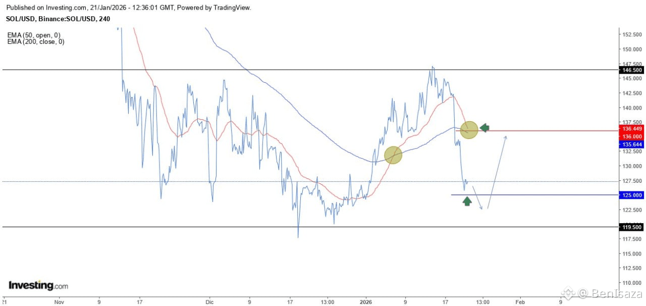 La defensa de la zona de 125 USD es la condición indispensable para cualquier recuperación inmediata. Si SOL logra mantener el terreno por encima de este nivel, podría generar un rebote técnico que busque retomar la barrera psicológica de los 136 USD. Este nivel no solo actuaría como resistencia, sino que también pondría a prueba una convergencia técnica clave: el encuentro de las medias móviles de 50 y 200 sesiones. Un rechazo en esta zona revitalizaría el sesgo bajista.