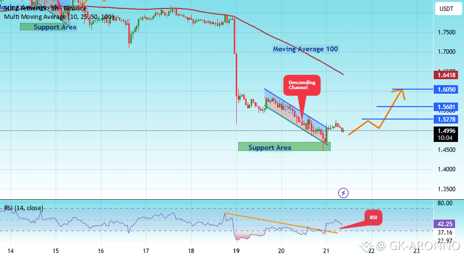 There is a key support zone in green at 1.45, and the price has bounced from this level several times. Another bounce is expected.