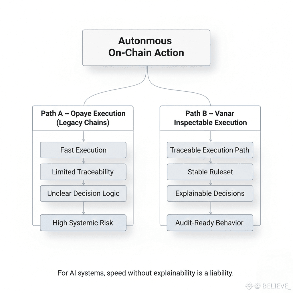 Another signal of Vanar’s AI-first thinking lies in how it treats execution transparency. Many chains focus on making execution fast, but not necessarily intelligible. For AI systems, that tradeoff is dangerous. Autonomous actions without explainability are liabilities, not efficiencies. When something goes wrong, the inability to trace logic becomes a systemic risk.