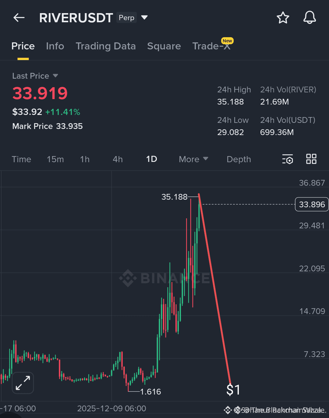 Potential for Market Crash: If this dominant holder decides to exit their position, the price of $RIVER could potentially crash to $Use Stop-Loss (SL) Orders: To mitigate the risk of a sudden crash, traders are advised to always have a stop-loss set.