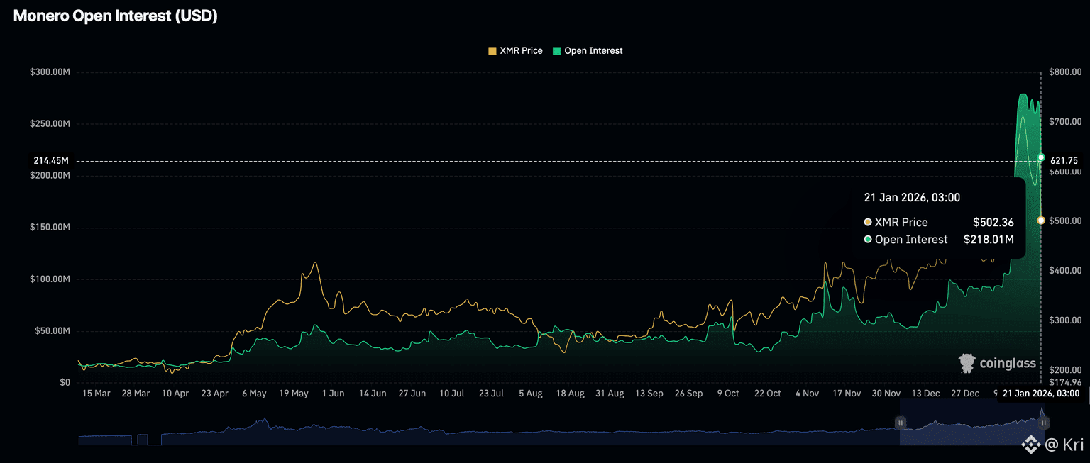 Retail demand for Monero has declined over the last week, with the derivatives market showing futures Open Interest (OI) at approximately $218 million on Wednesday.