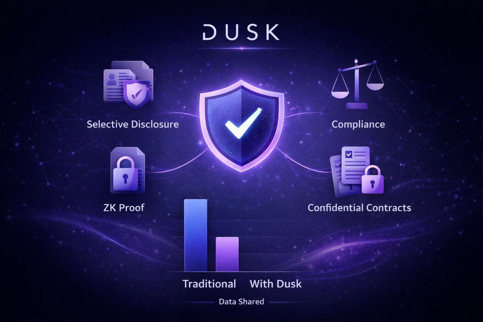 You ever notice how the world asks you to “prove it”… and then takes way more than it needs? One simple fact. And suddenly you’re handing over a whole folder. Picture this. You’re trying to join a new app, open a line of credit, or get cleared to trade a token that has rules around who can touch it. The prompt is always polite. “Upload your ID.” “Upload your bank file.” “Upload your tax paper.” And you pause for a second because, well… why do they need all of that to learn one thing? That tiny moment of doubt matters. Because once a file leaves your hands, it lives a new life. It gets copied. Stored. Shared inside teams. Or sits in a database you’ll never see. Most firms are not evil. They’re just… messy. People are busy. Systems are old. Data piles up. And the worst part is you don’t even get a clean trade. You didn’t sell your privacy for money. You gave it away just to pass a gate. This is where Dusk Foundation (DUSK) leans in with a sharper idea: selective disclosure. Prove a fact. Keep the file. Think of selective disclosure like showing a cinema ticket without handing over your whole wallet. The staff only needs to know “valid ticket, right time.” They don’t need your address, your full name history, your photos, your notes, your other cards. Just the one thing. Yes or no. In crypto, the “one thing” is often about rules. Are you on an allow list? Did you pass checks? Are you over a limit? Is your fund report real? Did the numbers match? And here’s the trick that feels like magic at first: you can prove it with math, not with documents. You’ll hear a term like “zero-knowledge proof.” Sounds heavy, I know. But the simple meaning is this: it’s a proof that shows you’re telling the truth, while hiding the extra details. Like proving you solved a puzzle without showing the steps on your paper. The checker gets confidence. The checker does not get your full page. Dusk’s whole point is to make this kind of privacy work where rules still exist. Not “hide everything and hope.” More like: keep the rules, reduce the data spill. A bank, a fund, or a platform can say, “We must only serve approved users,” and Dusk can support a way to answer, “Yes, approved,” without sending the full ID file across the internet again. That’s selective disclosure in plain words. And it changes the vibe of trust. Because trust stops being “please store my private life carefully.” Trust becomes “you don’t need to store it at all.” Why does this matter beyond a neat tech trick? Because money rails are turning into data rails. Every loan, every fund share, every token tied to real stuff comes with checks. If the only way to do checks is by collecting huge files, then you get the same old world again. Big forms. Big leaks. Big fear. People avoid the system, not because they hate rules, but because they hate giving up control. Selective disclosure flips that. It lets a person, or a firm, share just enough to move forward. No more. A lender can ask, “Does this user meet the income rule?” and get a proof back instead of a pay slip. A token fund can publish “our net value matches the report” without exposing each trade. A platform can show it blocked bad actors without doxxing every good user. You get a trail that auditors can trust, but not a pile of raw files that attackers love. And there’s another quiet win. Less data stored can mean less risk later. If you don’t hold what you don’t need, you can’t lose what you don’t have. That’s not a promise. It’s just basic logic. Fewer copies, fewer doors, fewer accidents. Of course, none of this is a magic wand. Proof systems still need good code. Good setup. Good checks. Bad inputs can still produce bad outputs. Humans can still cheat around the edges. So the goal isn’t “perfect.” The goal is cleaner trade-offs. Better defaults. That’s why Dusk’s angle is interesting in a grown-up way. It’s not yelling “privacy!” like a slogan. It’s offering a practical middle path: rules stay, proof gets stronger, and your private file stays… yours. Not Financial Advice. Just a way to think about where compliant crypto might go when people get tired of handing over their whole life to prove one small fact. So here’s the real question. If you could prove what you need to prove, without exposing the rest… why would you ever go back?