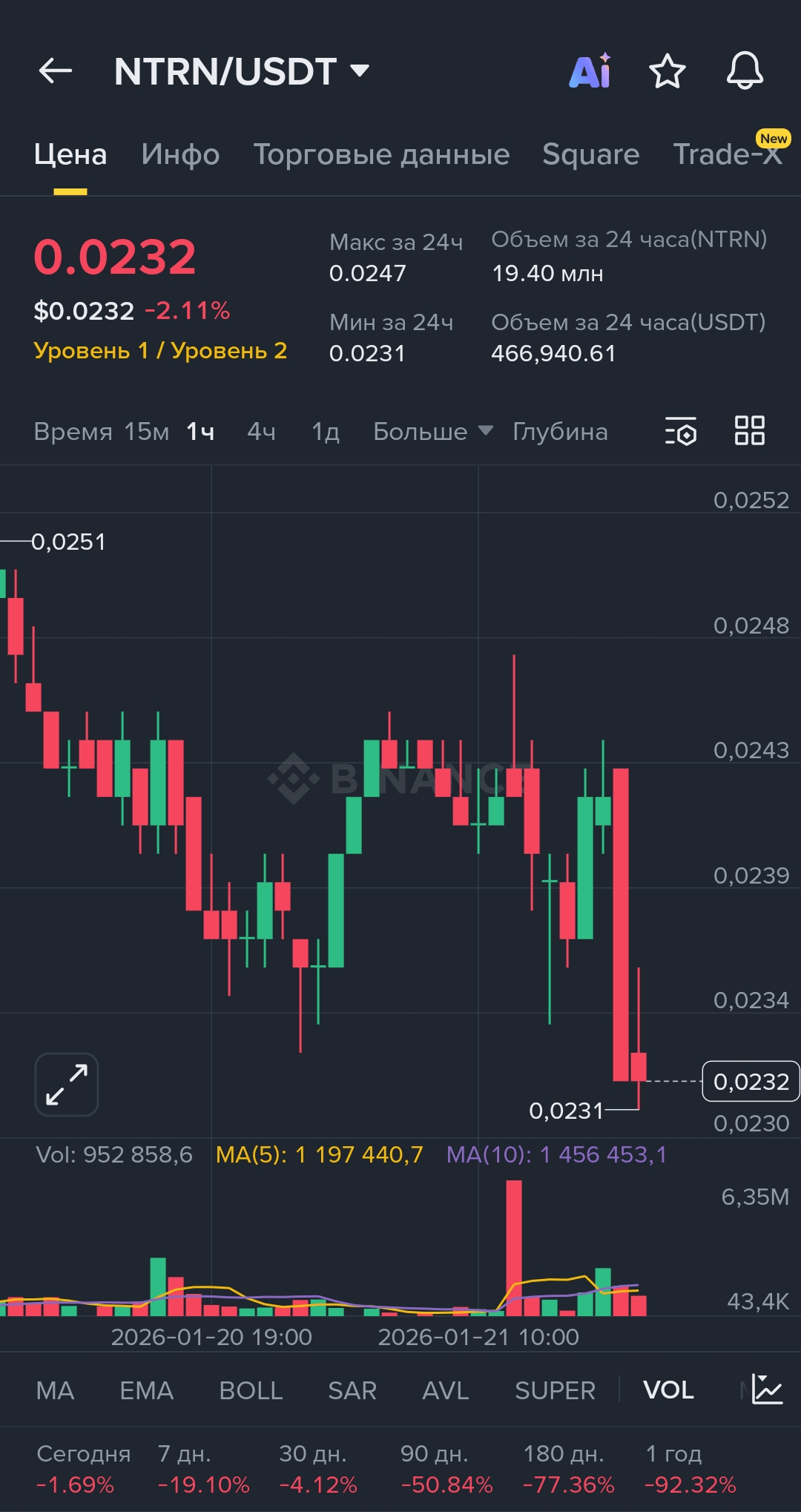 Тенденция вниз ! Судя по техническому анализу, есть явные признаки того, что цена Neutron снижается ! 😭