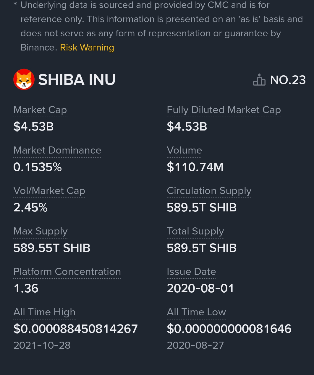 SHIBA INU-Angebot liegt ebenfalls über 580T, sodass 580 $ Marktkapitalisierung erforderlich sind, was hochgradig unmöglich ist