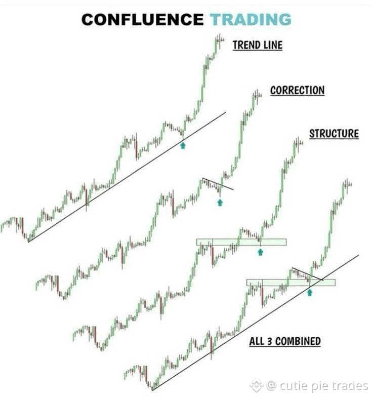 - Volume can confirm the strength of a price movement. Confluence occurs when high volume aligns with a breakout or reversal at a key level.