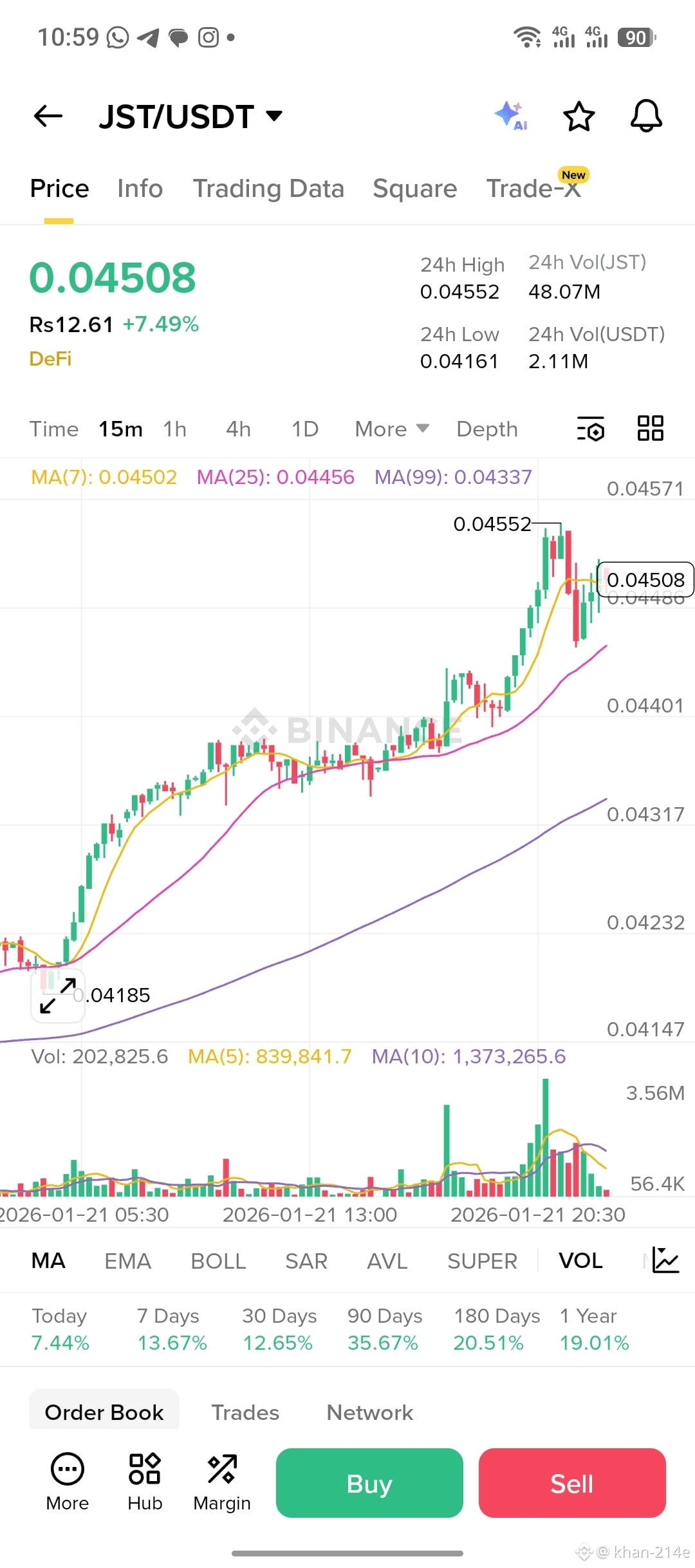 JST (JUST) price around ~$0.041–$0.044 USDT (varies by exchange). Daily range roughly between ~$0.040–$0.044 recently. �