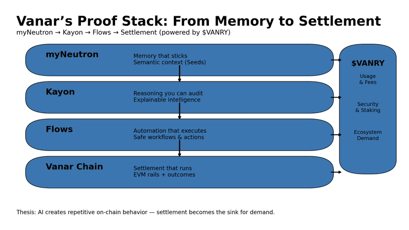 Das ist genau der Grund, warum Vanar für mich herausragt. Nicht, weil sie "KI" auf einer Landing Page sagen — das tun jetzt alle — sondern weil sie tatsächlich Produkte ausliefern, die sauber zu dieser Checkliste passen.